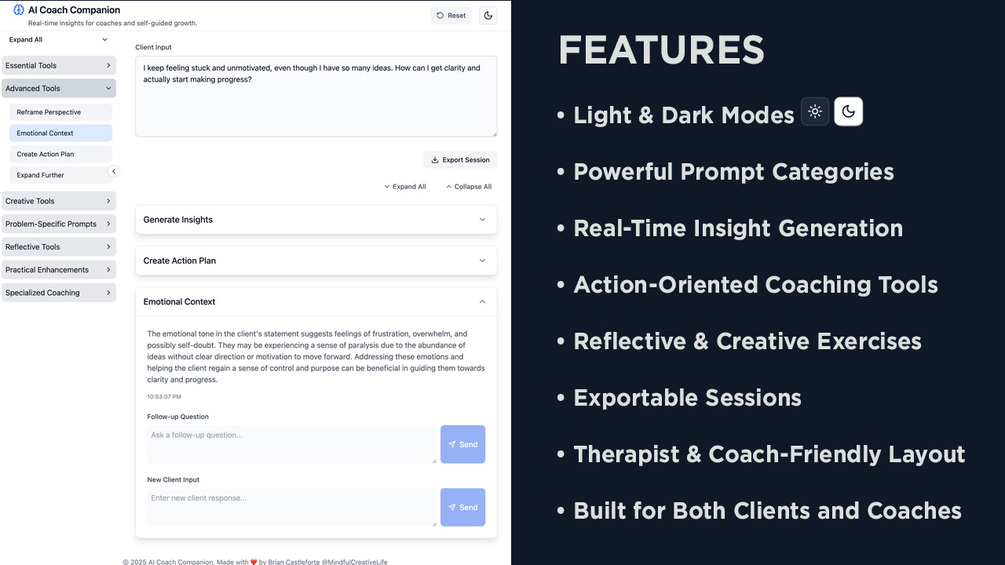 I built AI Coach Companion to meet that need — for both sides of the coaching conversation.